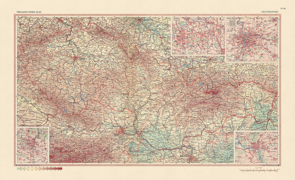 Old Map of Czechoslovakia, 1967: Prague, Bratislava, Brno, Ostrava, Krkonoše National Park