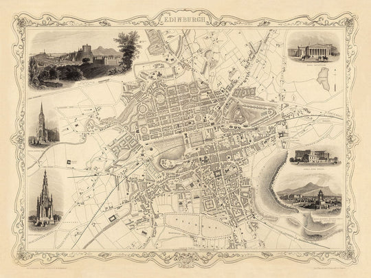 Engraved by John Rapkin and published by J. Tallis & Co in 1851, this is one of the finest and most detailed historic maps of Edinburgh that you can find from the peak of industrialised Victorian Britain.