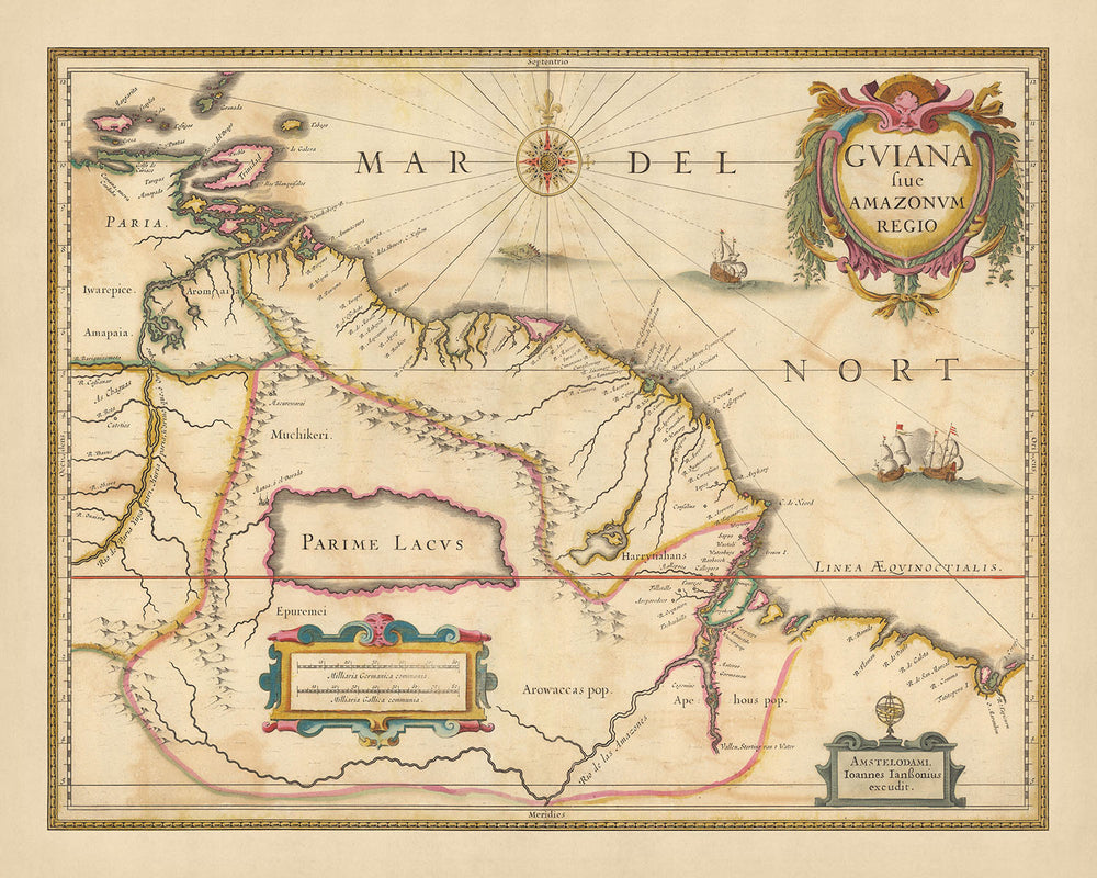 Old Map of Guiana the Amazon by Nicolaes Visscher II, 1690: Trinidad and Tobago, Suriname, Amapá, Pará, Guyana