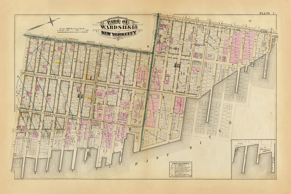 Old Map of Lower East Side, New York City, 1879: Bromley’s Detailed Wards 11 & 18