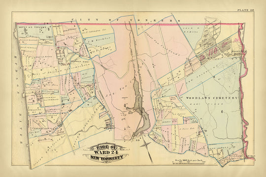 Old Map of the Bronx, NYC by Bromley, 1879: Woodlawn Cemetery, Van Cortlandt Lake, Mount St. Vincent