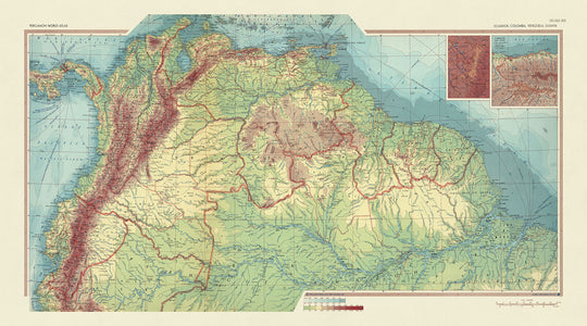 Old Map of South America, 1967: Amazon River, Ecuador, Colombia, Venezuela, Guiana