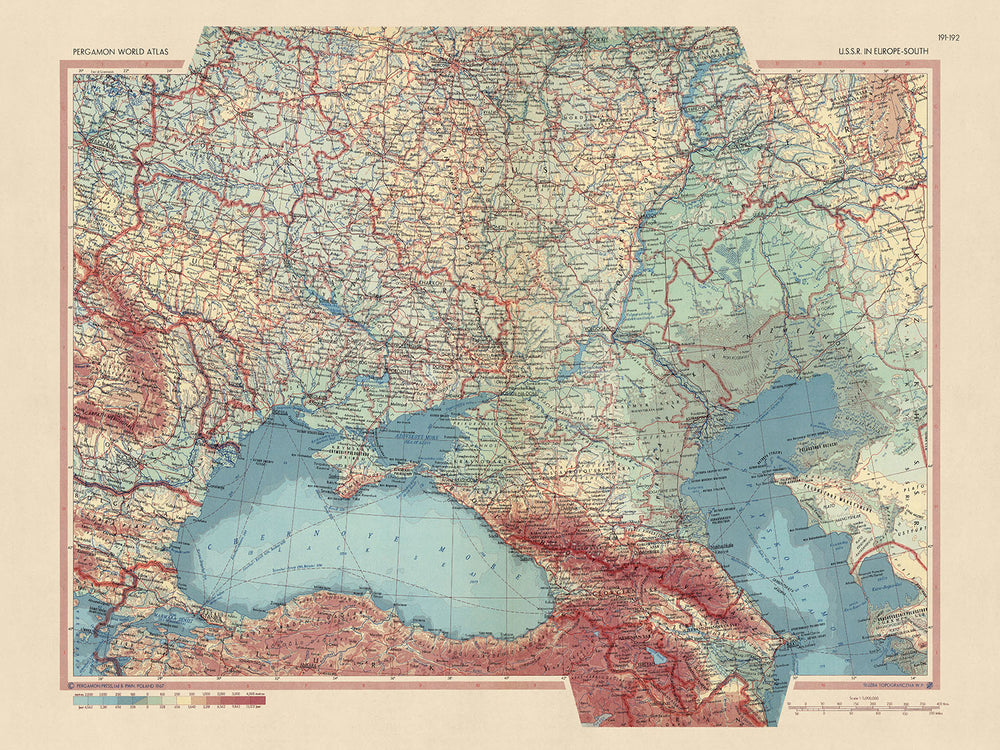Old Map of Southern USSR and Eastern Europe, 1967: Detailed Political & Physical Map