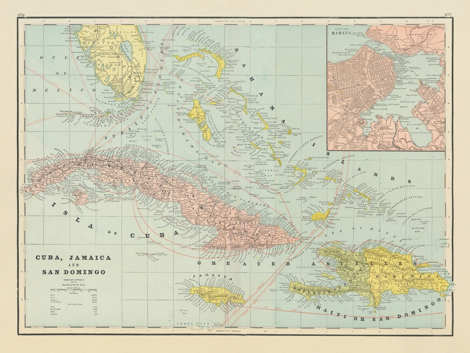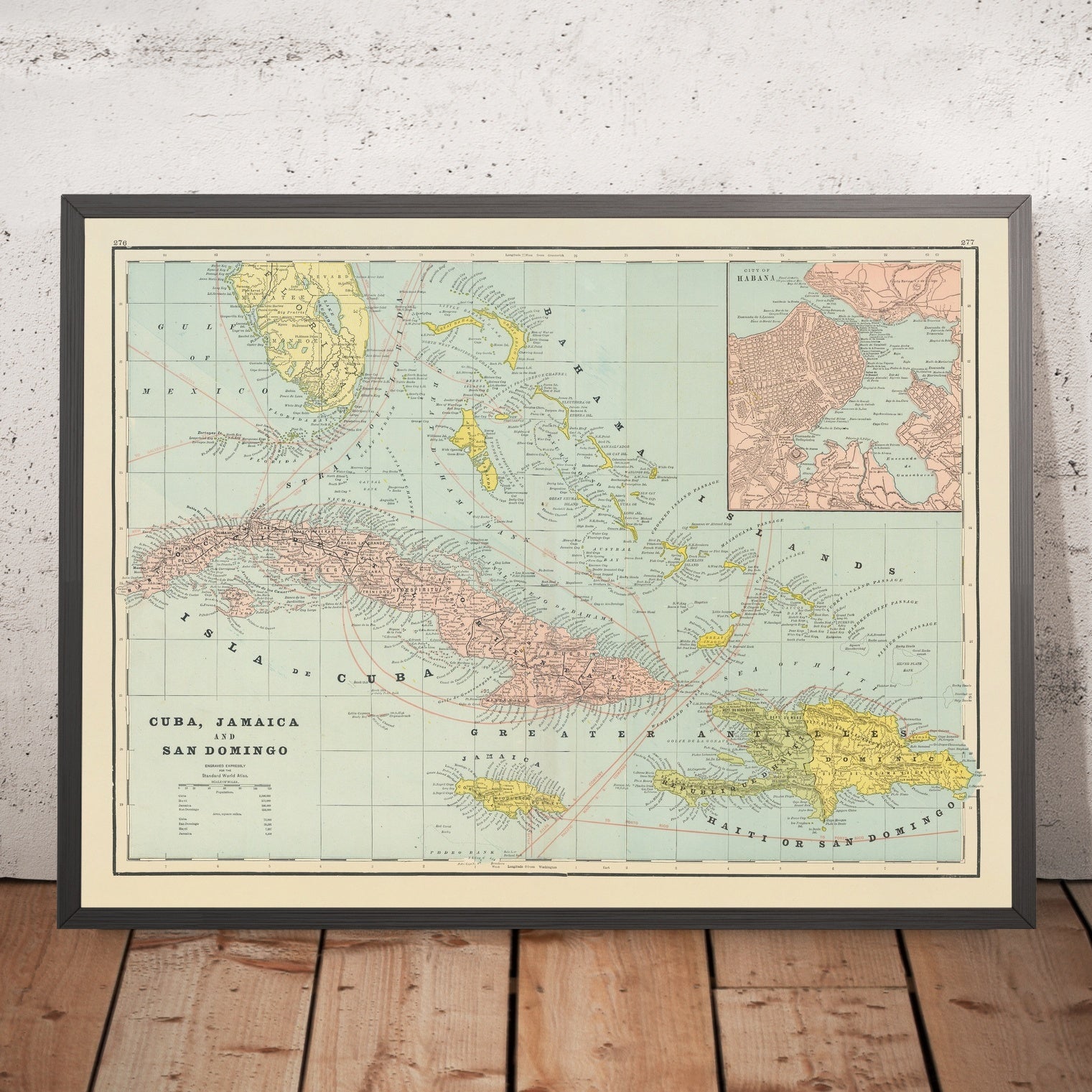 Cram—one of the United States’ most industrious late‑19th‑century cartographic publishers—brought a data‑rich, reader‑forward discipline to this sheet. His atlases helped Americans visualize distant theaters of interest just as U.S. attention intensified in the Caribbean, foreshadowing the strategic debates that would precede the Spanish‑American War. The Havana inset underscores that focus: a harbor city drawn with the care due a hemispheric pivot, its roadstead, waterfront, and principal quarters clarified for merchants and mariners alike. The whole composition exemplifies Cram’s method—balanced color, disciplined lettering, and layers of political and physical intelligence—yielding a map that is at once instructive, navigational, and quietly beautiful.