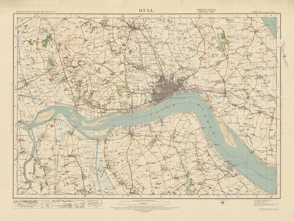 This Old Ordnance Survey Map, Sheet 33 - Hull, 1925 is a remarkable piece of cartographic history that provides a fascinating glimpse into the past. The map covers the region of Hull, England, and its surrounding areas, offering a wealth of information about the towns, cities, and interesting features that existed during that time.