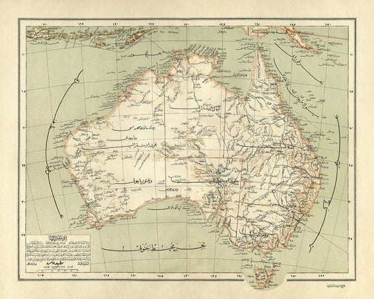 Old Ottoman Arabic Map of Australia by Eşref, 1893