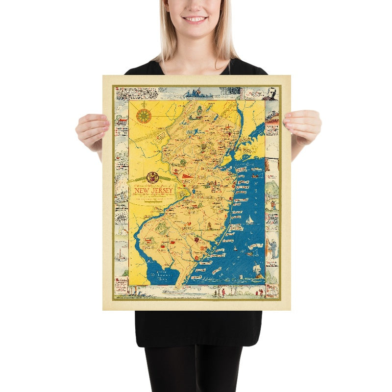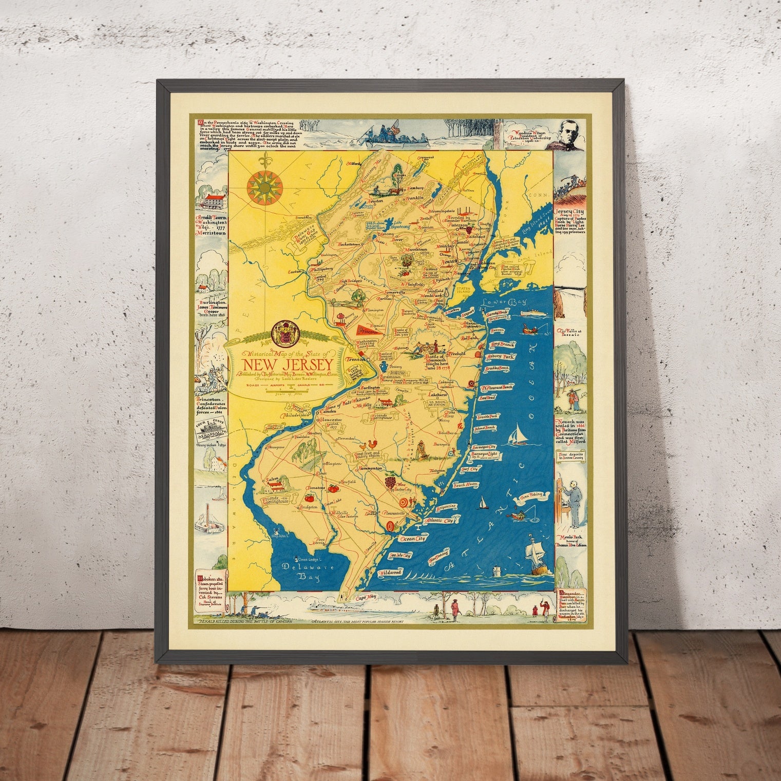 - Historical Significance: Celebrates New Jersey’s identity and contributions to American history; serves as both a geographical reference and a visual celebration of the state’s rich heritage, emphasizing significant events and influential figures
