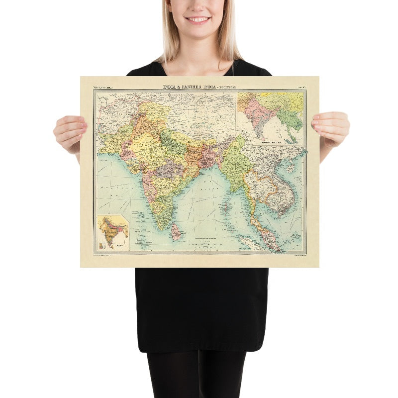 Rare Old Political Map of India & Southeast Asia by Bartholomew, 1922: Bombay, Delhi, Rangoon, Bangkok, Colombo