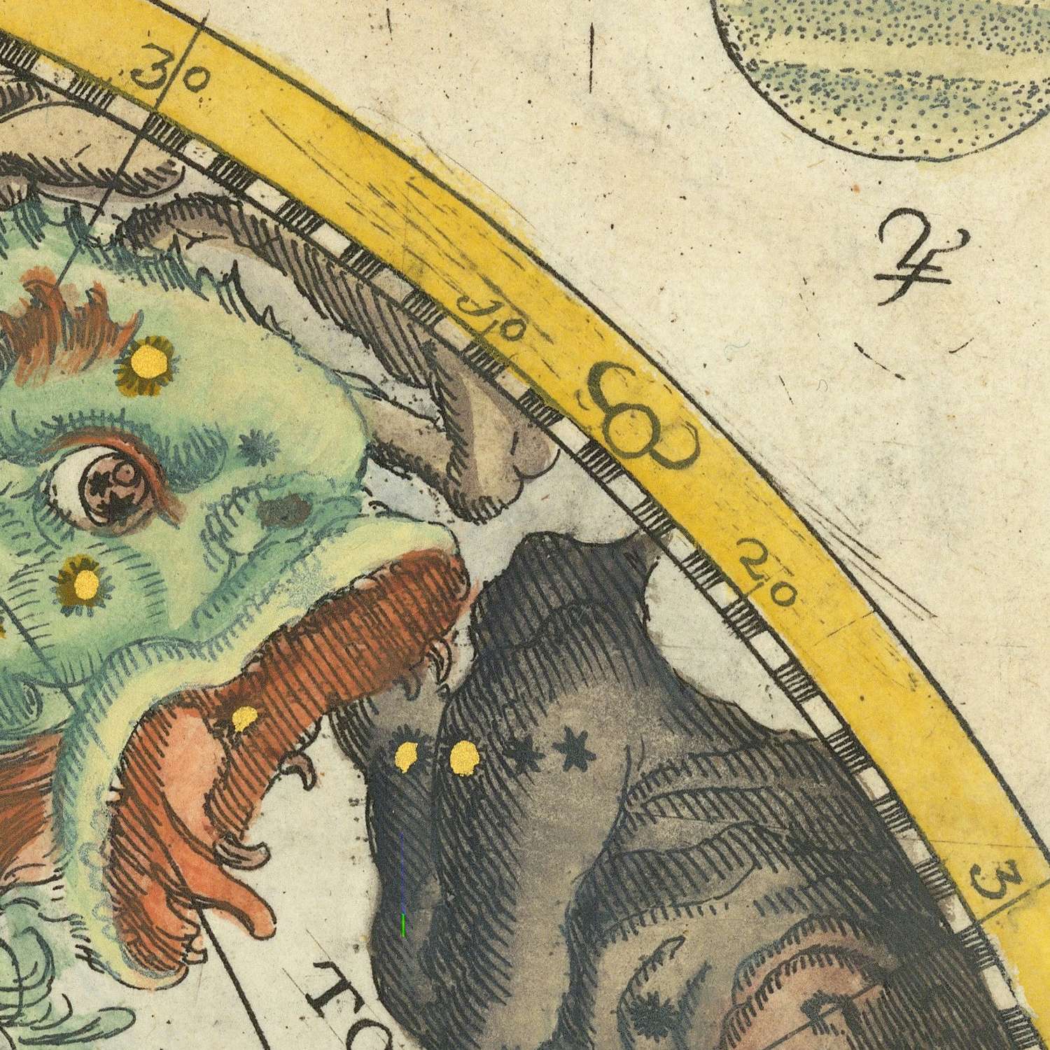- Cartouches: Decorative borders and labels for the northern and southern hemispheres; an elaborate top cartouche showcases Baroque artistry and intricate detailing