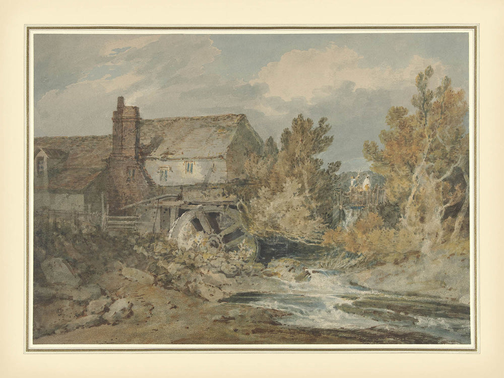 Watermill near a Flowing Brook, painted by the renowned artist Turner in 1795, captures a timeless English pastoral scene filled with harmony and delicate movement. Known for his innovative landscapes and evocative manipulation of light, Turner lays out a tranquil vision of nature interacting with rural life, inviting viewers to momentarily step into this idyllic countryside setting. With the rambling brook in the foreground and the iconic watermill nestled amidst lush trees, this early Turner painting beautifully demonstrates his developing mastery of the landscape genre and his unmistakable romantic spirit.